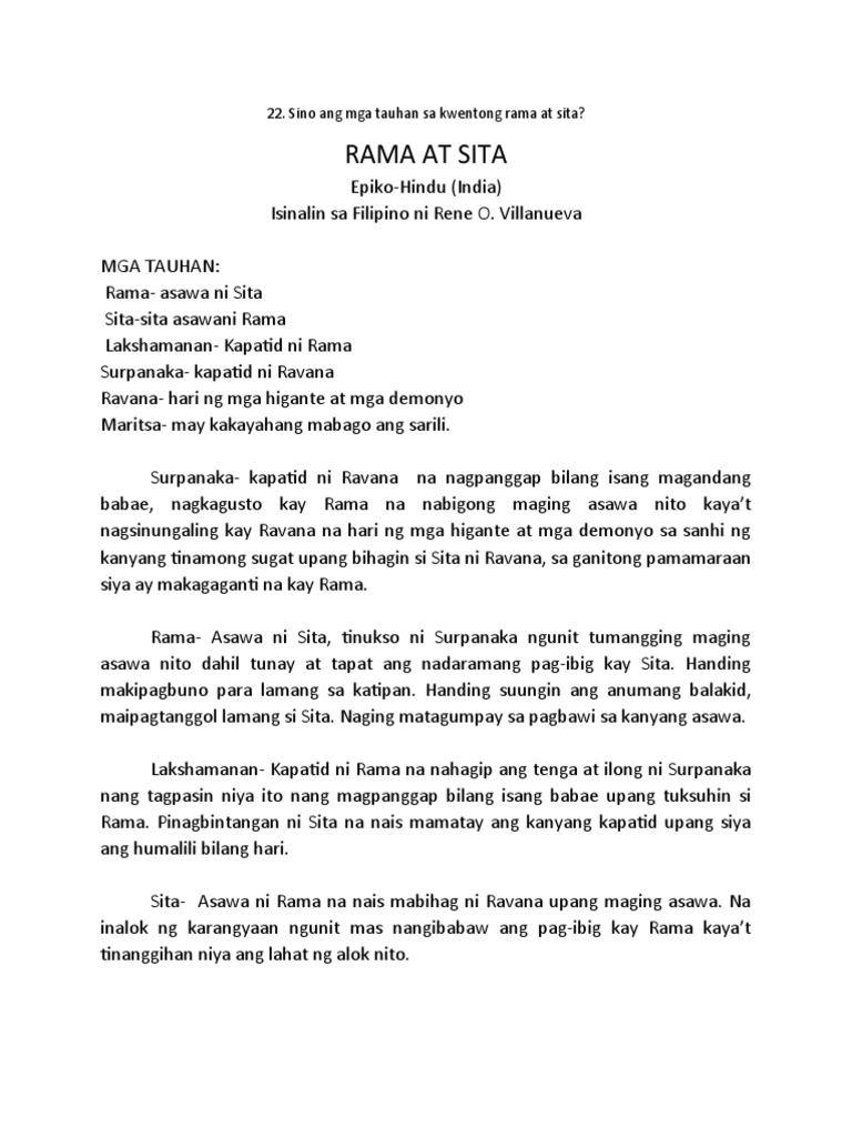 Siya ay si Surpanaka ang kapatid ni Ravana na haring mga higante at demonyo. Contextual translation of ang buod ng rama at sita into English. Buod Ng Rama At Sita.