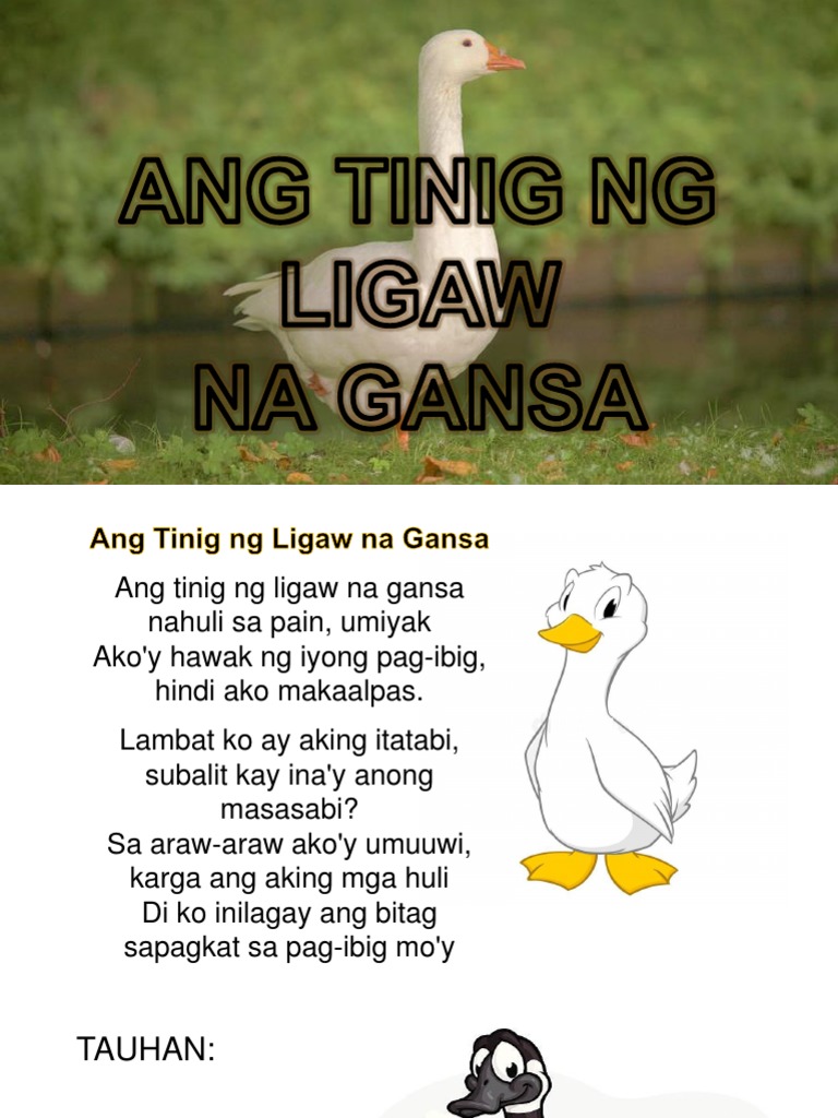 37 Full PDFs related to this paper. Ang tinig ng ligaw na gansa at ano ang sukat tugma at talinghada ng Ang tinig ng ligaw na gansa Kilala ang mga taga-Egypt sa pagpapahalaga sa kamatayan ng tao.