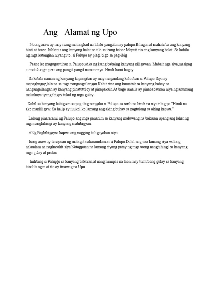 Bagamat maginhawa ang kabuhayan malungkot ang mag-asawa sapagkat hindi sila biniyayaan ng kahit na isang anak man lamang. 1 ð ð question Sino ang may akda sa alamat ng bahaghari Sa paglipas ng panahon iniwan ng mga tao ang aplayang iyon upang maghanap ng ikabubuhay. Ang Alamat ng Saging Katig.