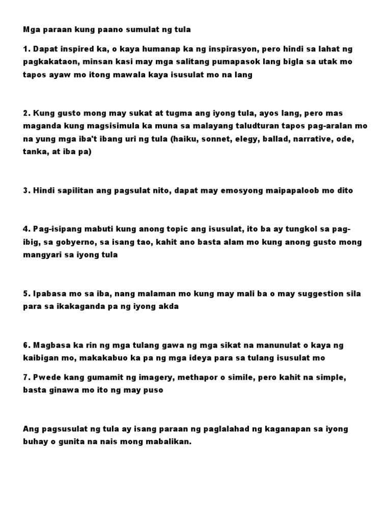 Mga Paraan Kung Paano Sumulat Ng Tula Pdf