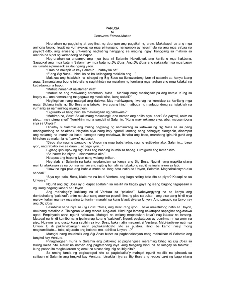 Parusa Ni Genoveva Edroza Matute Mensahe