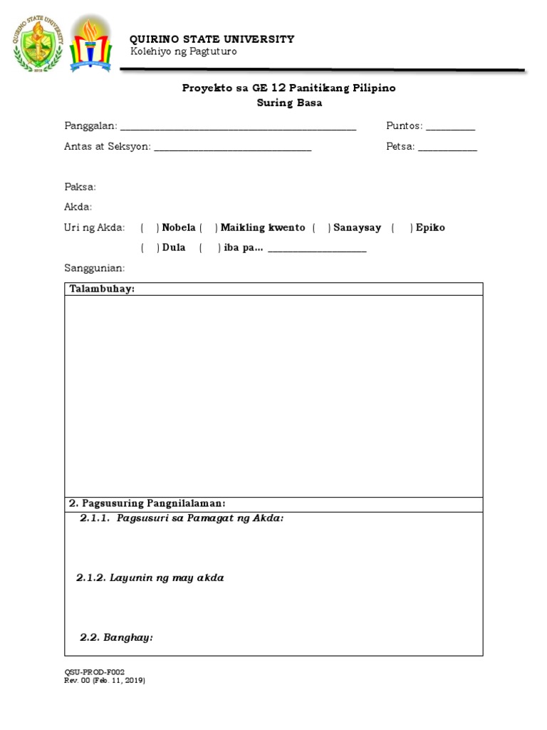 Format Batayan Sa Pagsusuri Sa Akda Una Para Sa Tuluyan Ang Ikalawa Ay Para Sa Patula Pdf
